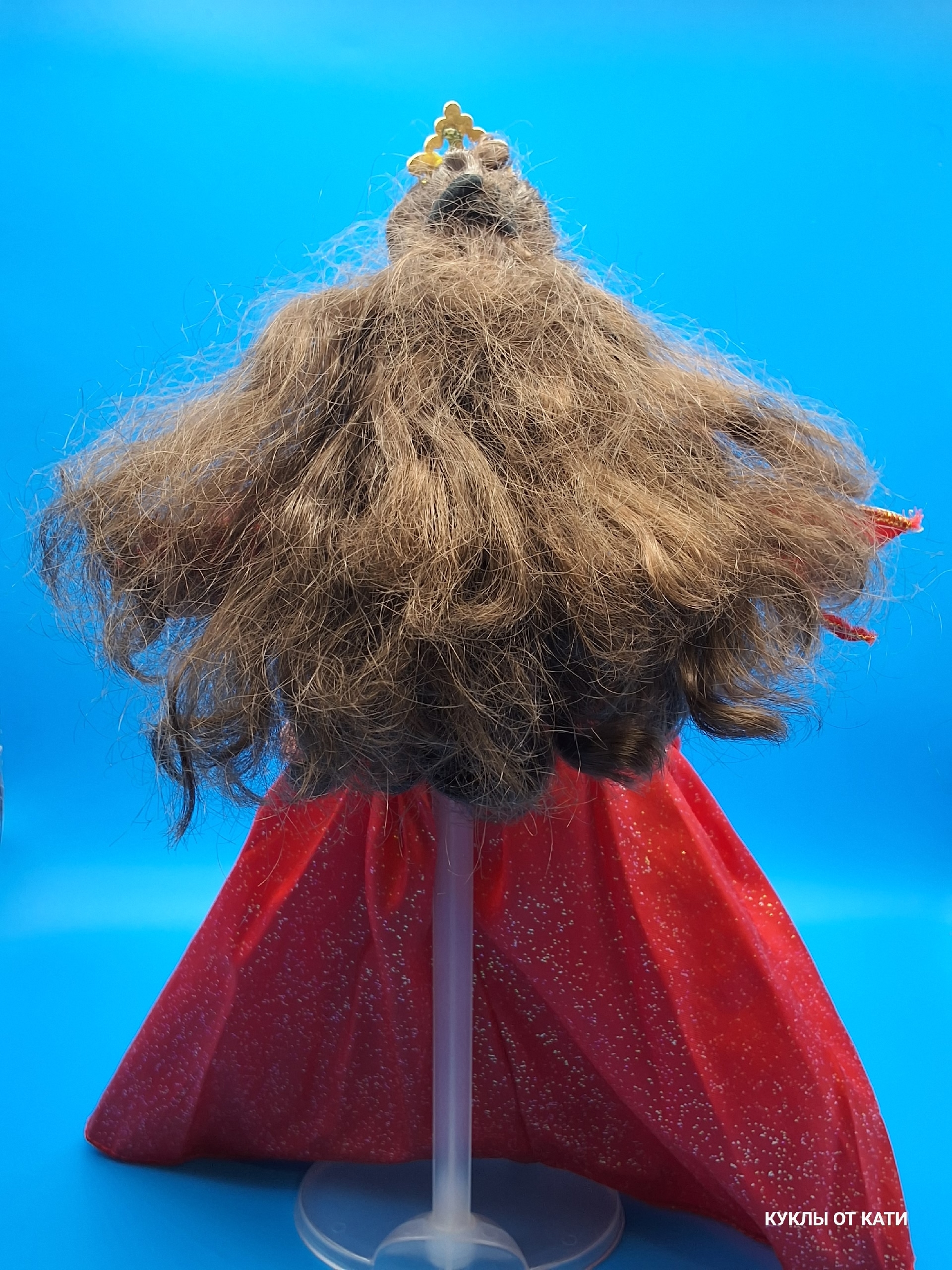 * **Причёска:** мягкие каштановые волосы с естественными волнами. Кончики слегка спутанны (рекомендуется аккуратная укладка). Лунки отсутствуют.