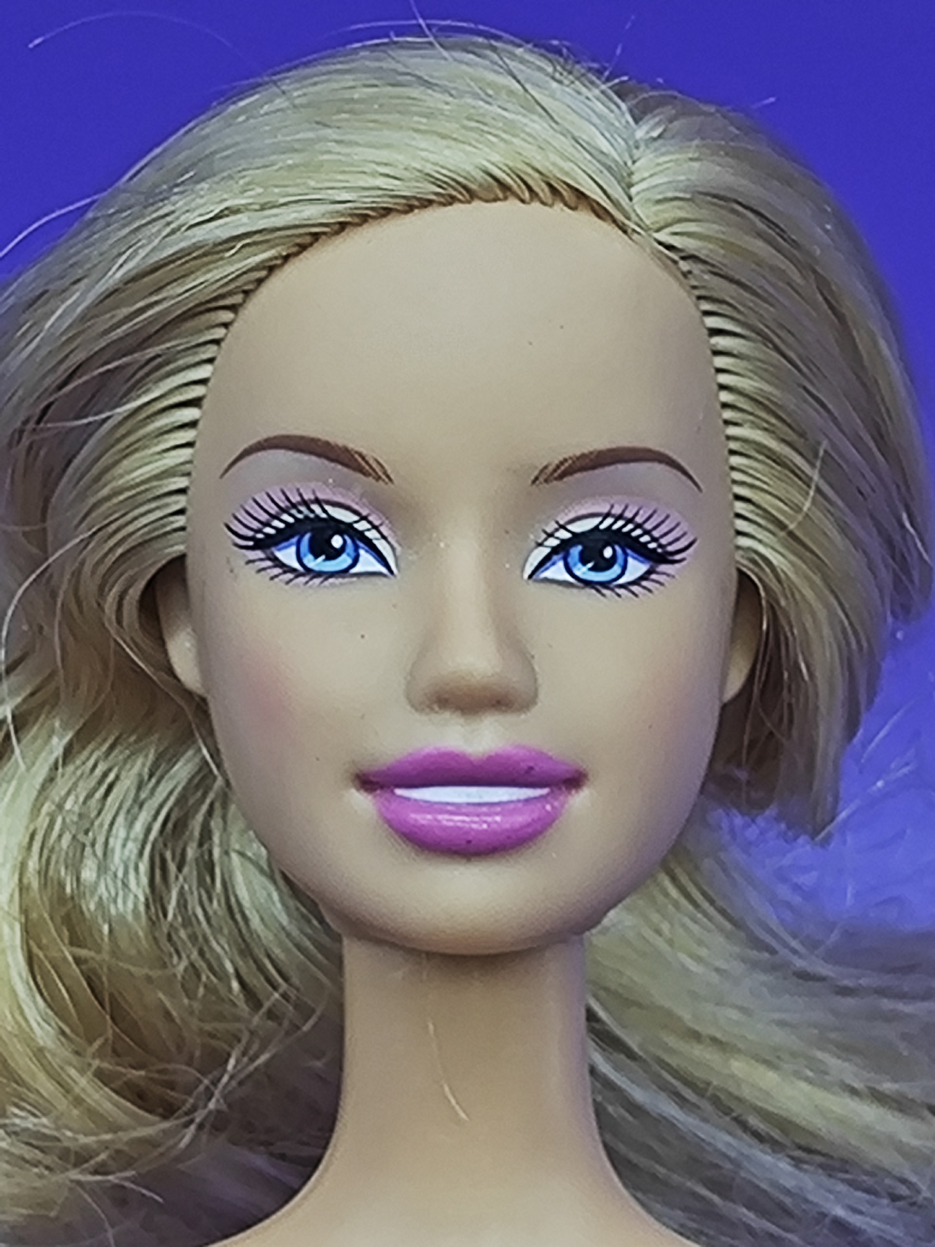 Волосы: слегка спутаны, что легко исправить при укладке. Позволяют создавать разнообразные причёски, добавляя игре креативности. Присутствует одна пустая лунка сзади — незначительный дефект, который практически не заметен.