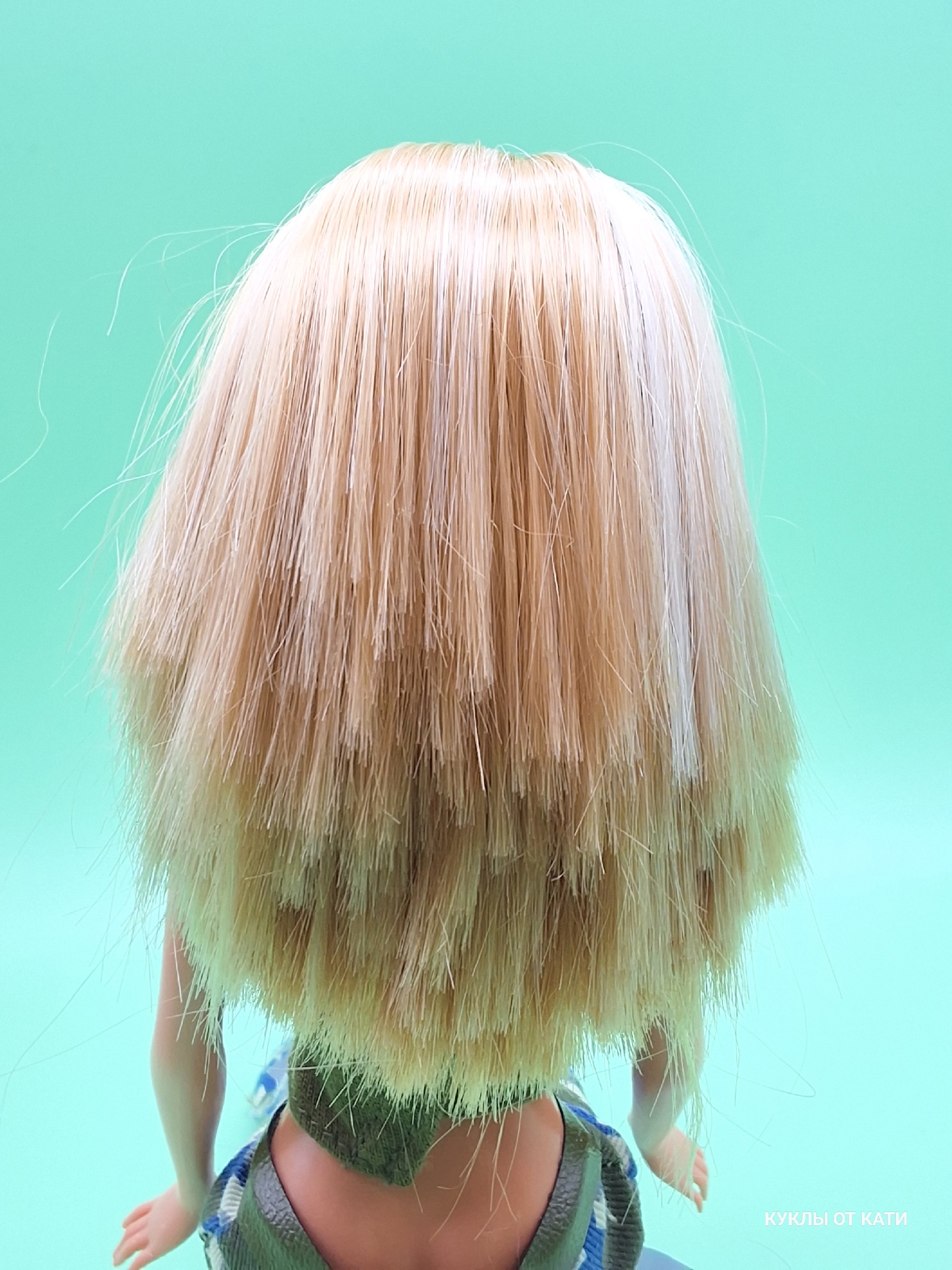Волосы: мягкие, гладкие, очень густые (несколько цветов), легко расчёсываются, длина сохранена.
