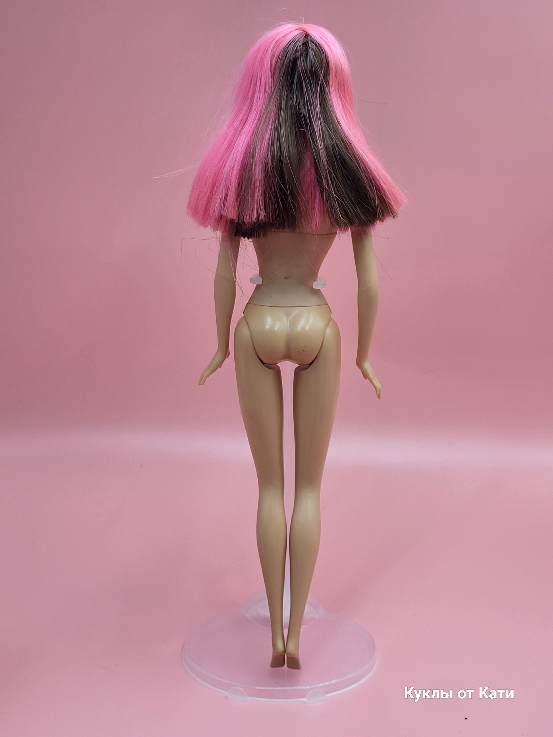Особенности дизайна: сочетание модного силуэта Барби с детализированным макияжем и стильной двухцветной причёской.