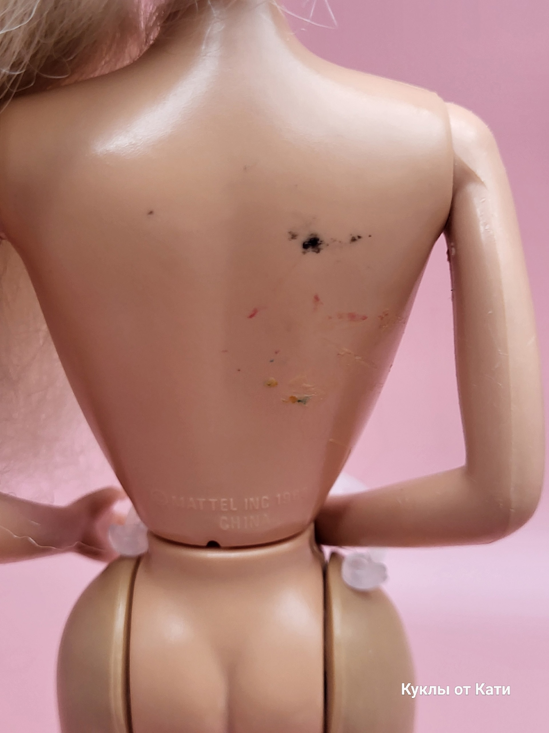Лёгкие следы краски на теле (на ногах и спине) — добавляют кукле винтажный шарм и подчёркивают её аутентичность.