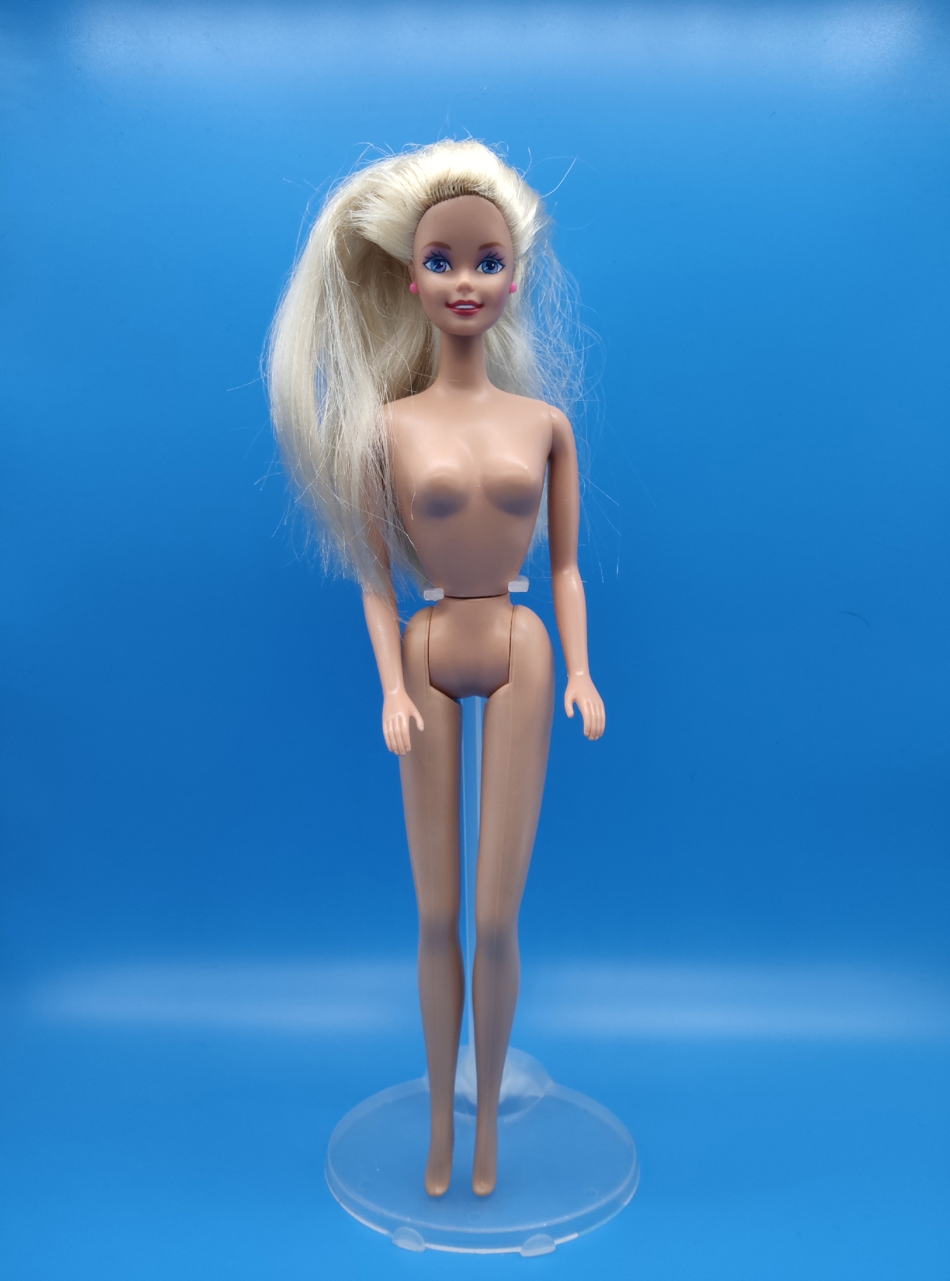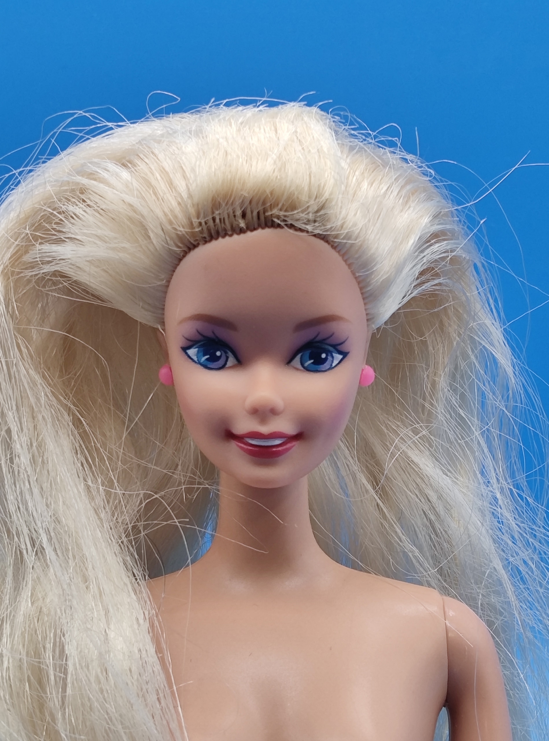 Волосы. У Барби использовали качественные материалы для прошивки волос, в отличие от многих других кукол того времени, у которых волосы были «полиэтиленовыми».