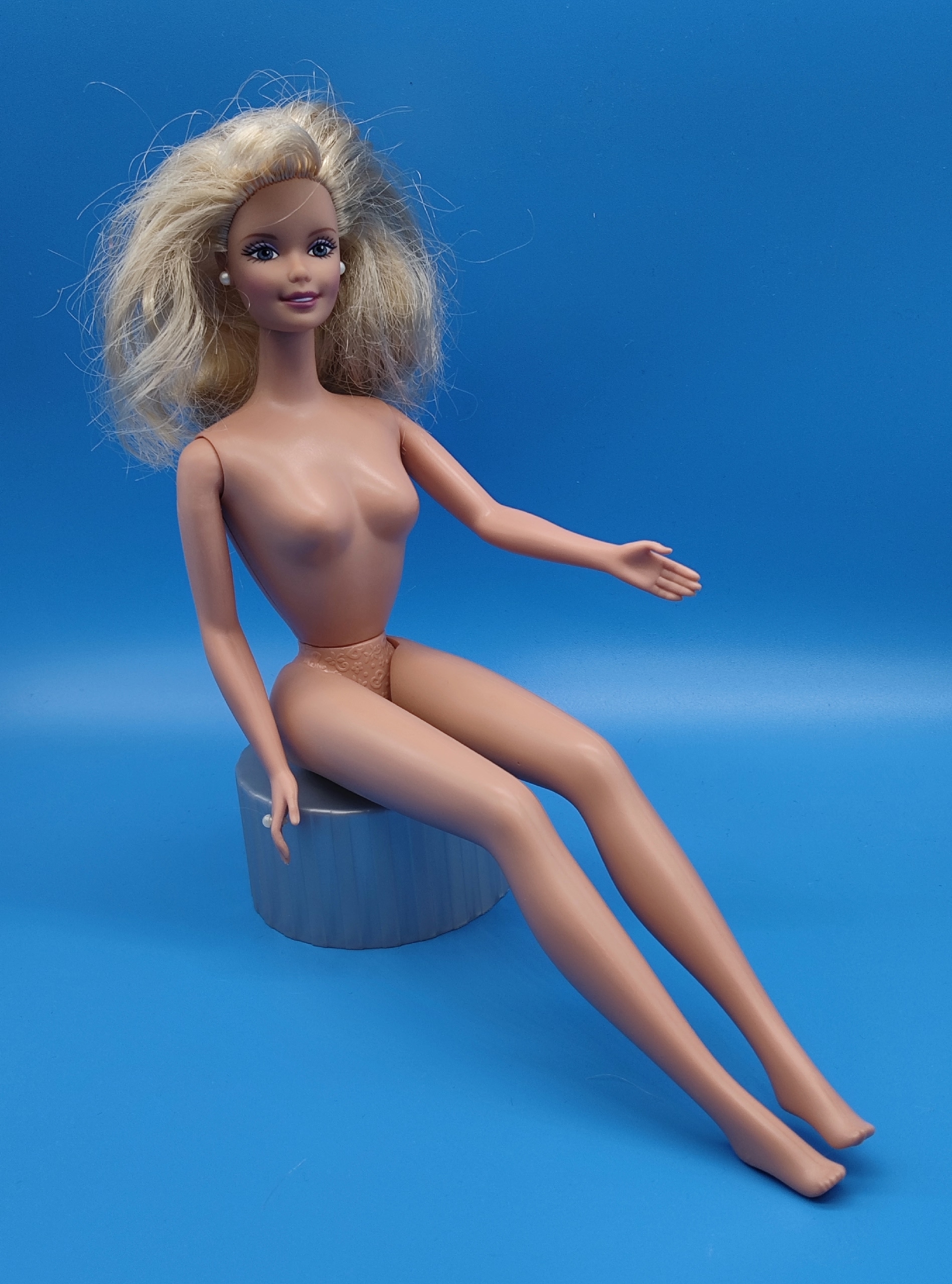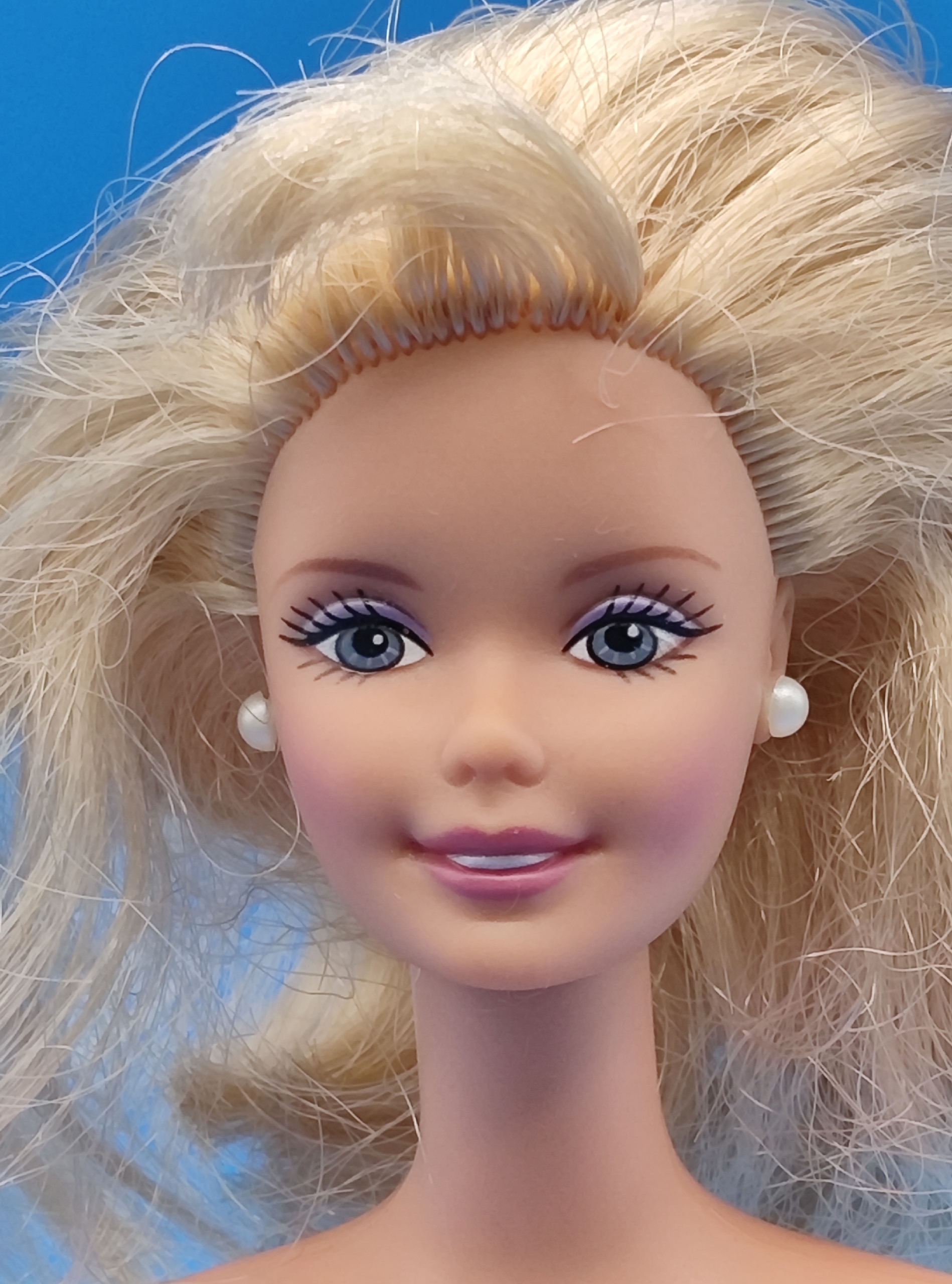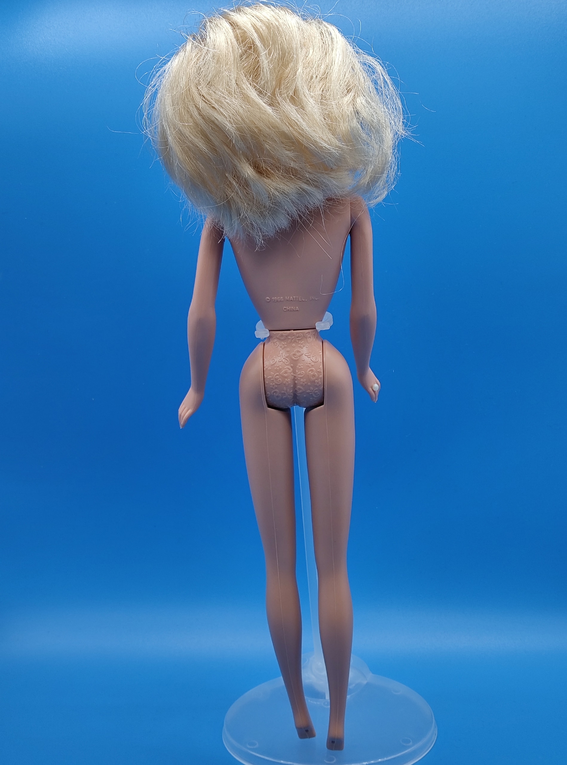 Волосы. У Барби использовали качественные материалы для прошивки волос, в отличие от многих других кукол того времени, у которых волосы были «полиэтиленовыми».