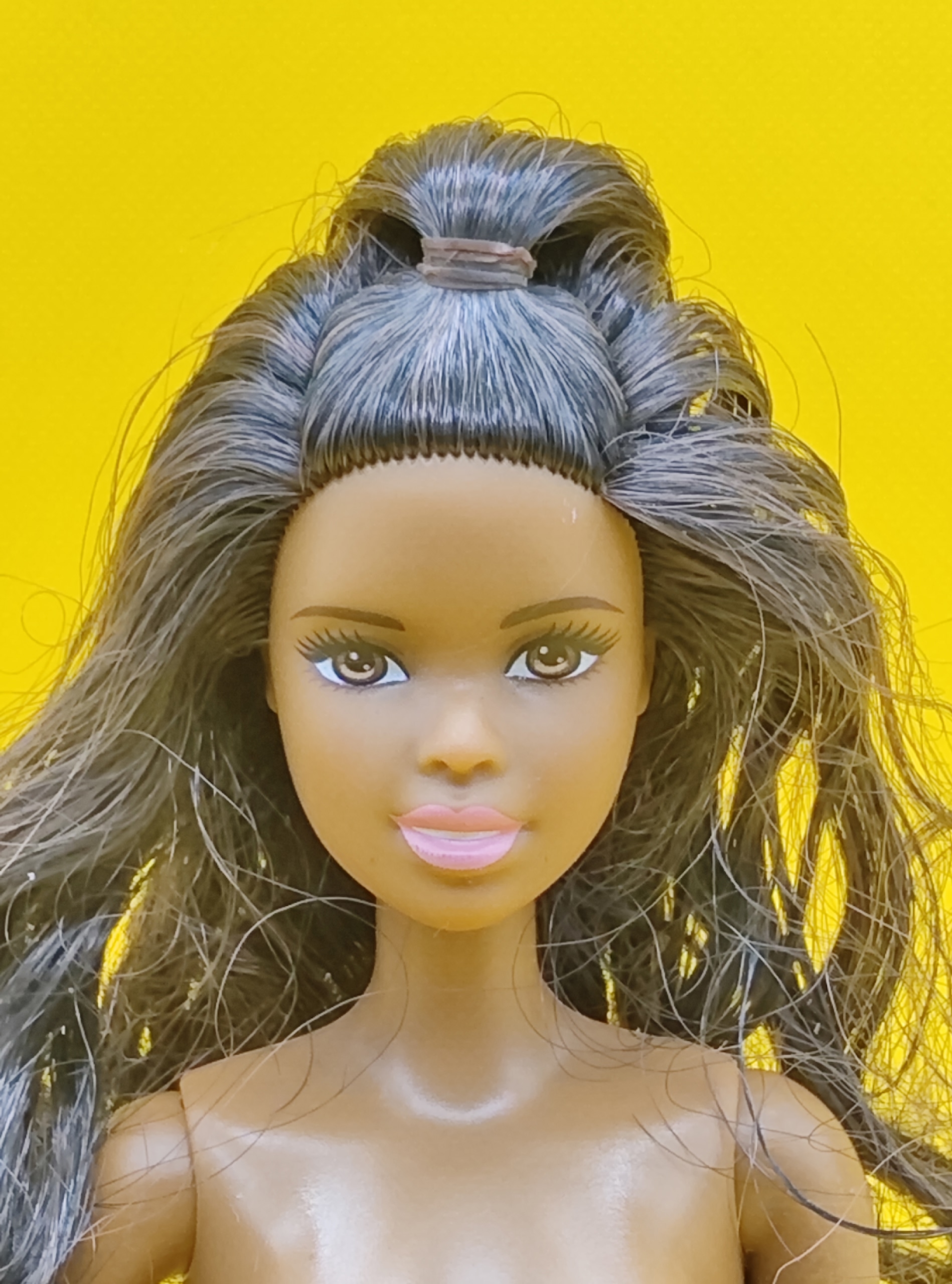 Волосы без проплешин — большая редкость для кукол такого возраста (требуется чистка и укладка для восстановления первоначального вида).