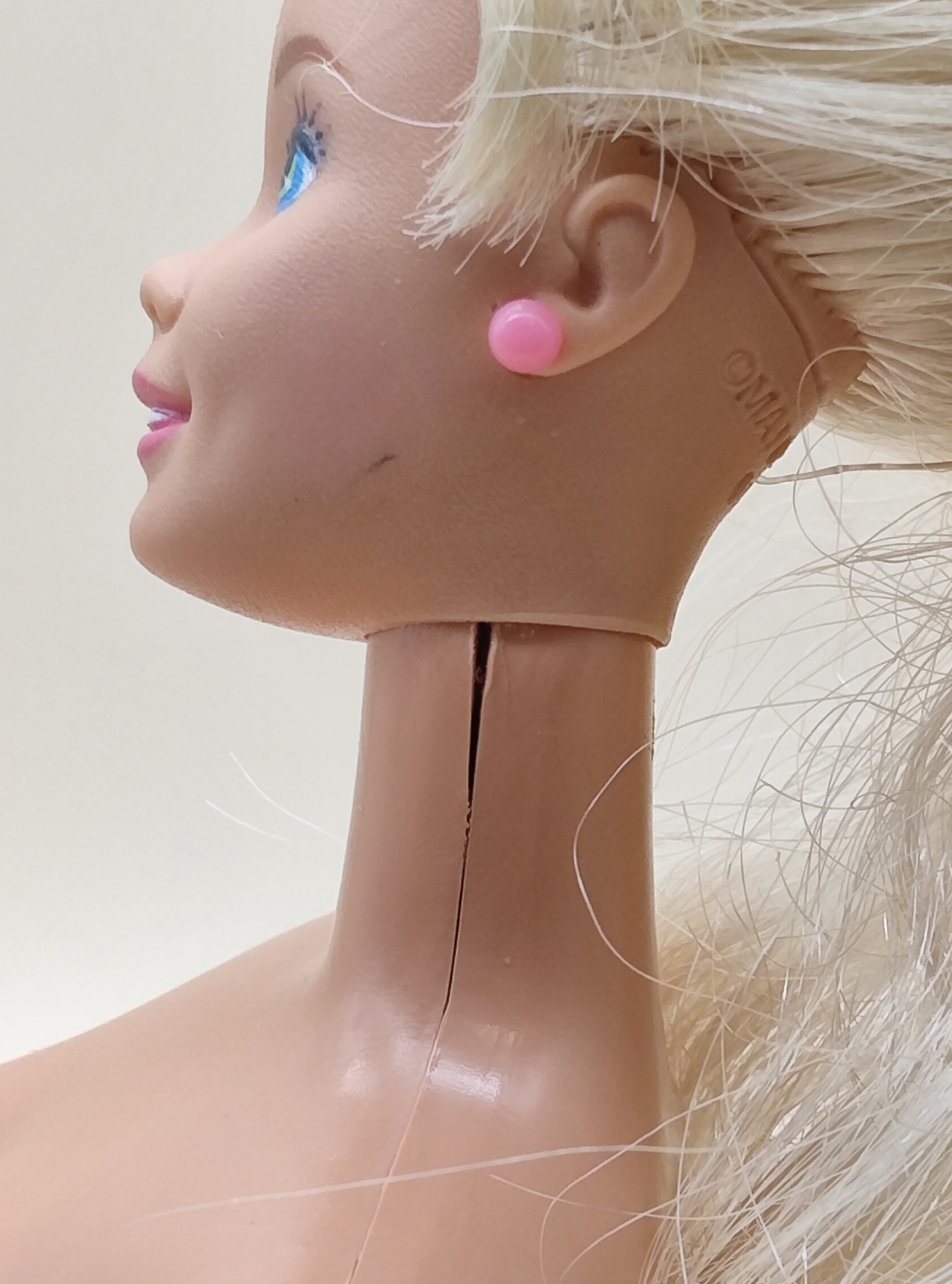 Шея: без трещин и сколов, что гарантирует долговечность. Есть незначительное расхождение шва — это не влияет на поворот головы, функциональность полностью сохранена.