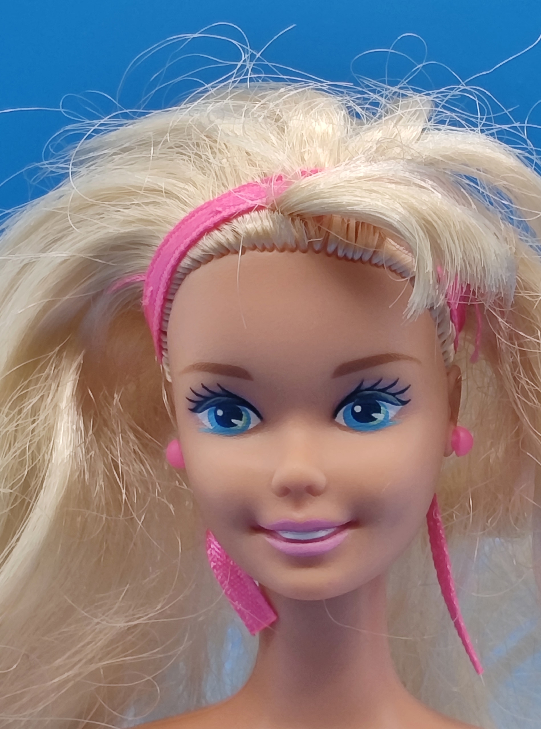 Из украшений — только серьги-гвоздики. Макияж дополняет образ и красиво выделяет сине-голубые глаза куклы.