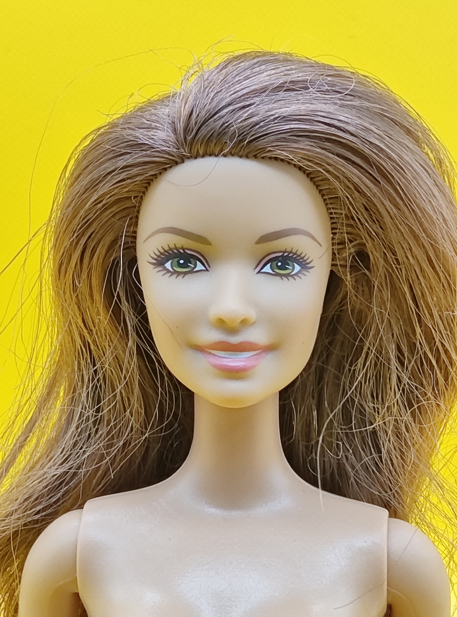 Волосы: требуют чистки и укладки (состояние после хранения/транспортировки).