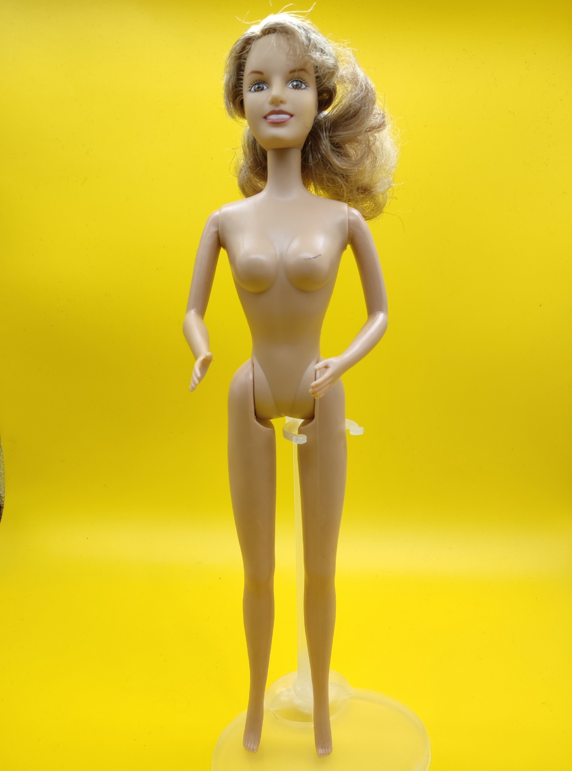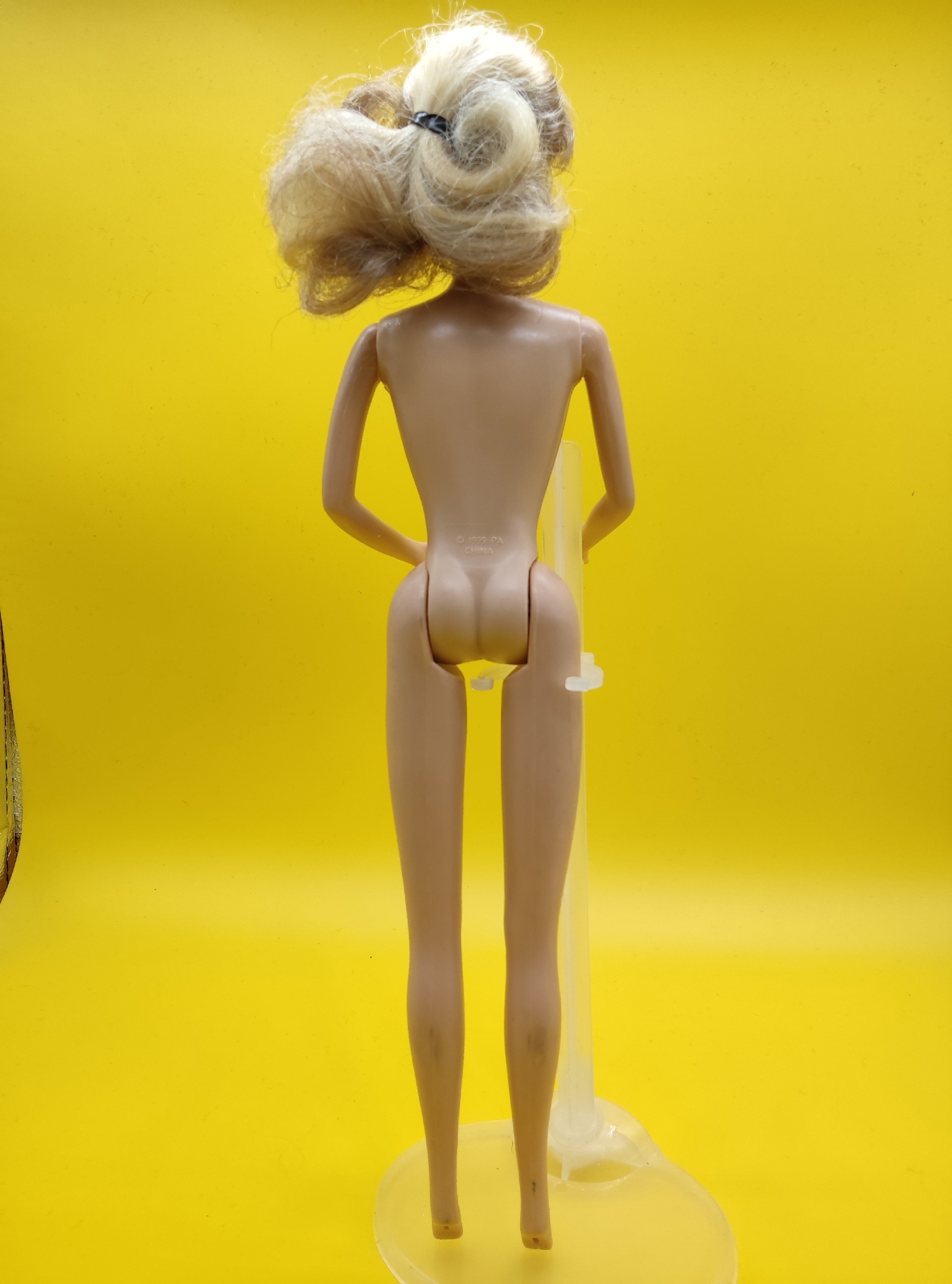 Кукла представляет собой аутентичный винтажный экземпляр, стилизованный под образ Бритни Спирс. Несмотря на необходимость ухода за волосами и наличие малозаметной царапки на груди, общее состояние остаётся достойным для коллекционирования. Подходит как для пополнения коллекции, так и для реставрации с последующей демонстрацией. Клеймо «P.A.» может указывать на лицензионного производителя или подрядчика эпохи выпуска.