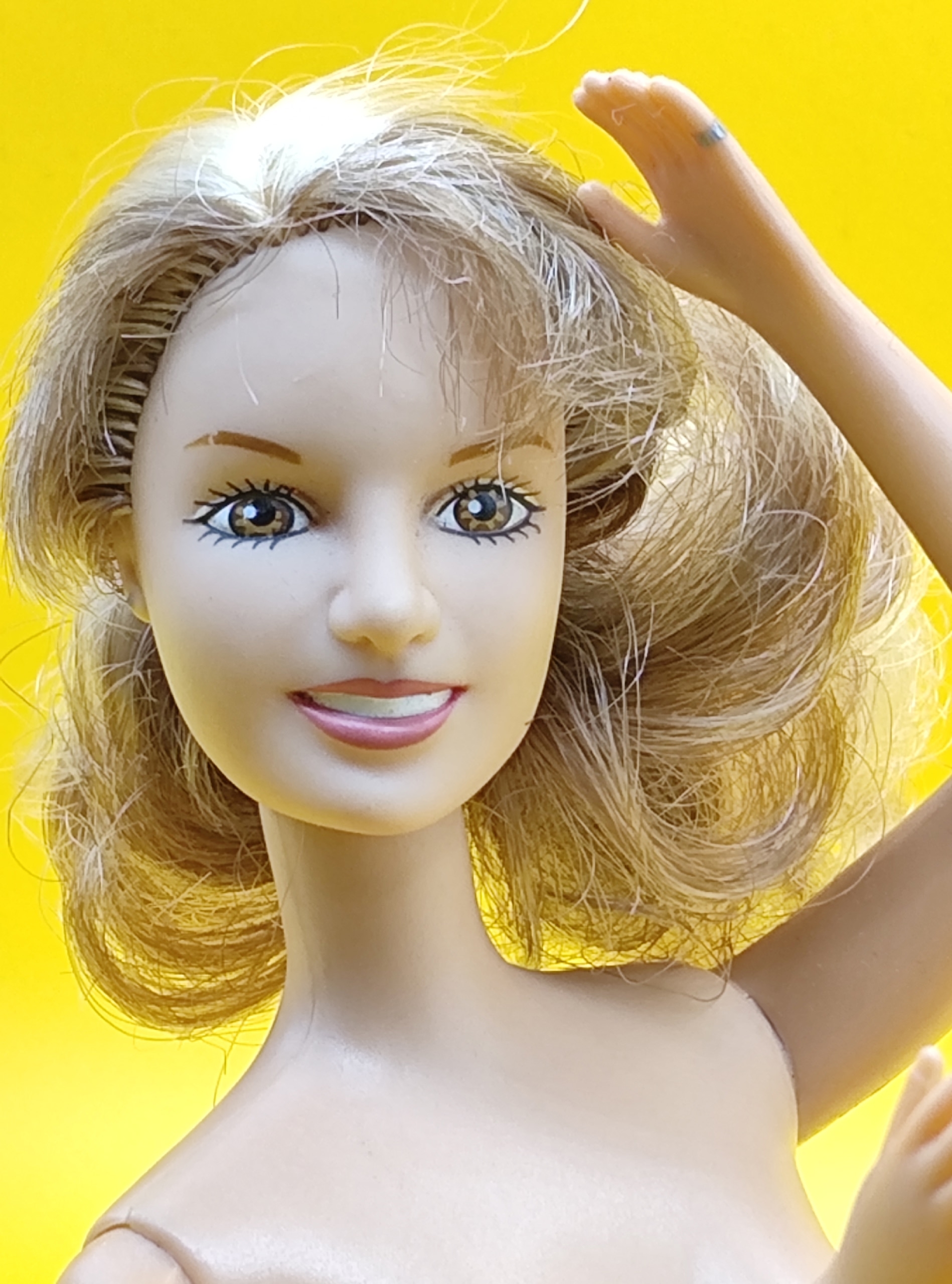 Волосы: требуют чистки и укладки (состояние после хранения/транспортировки).