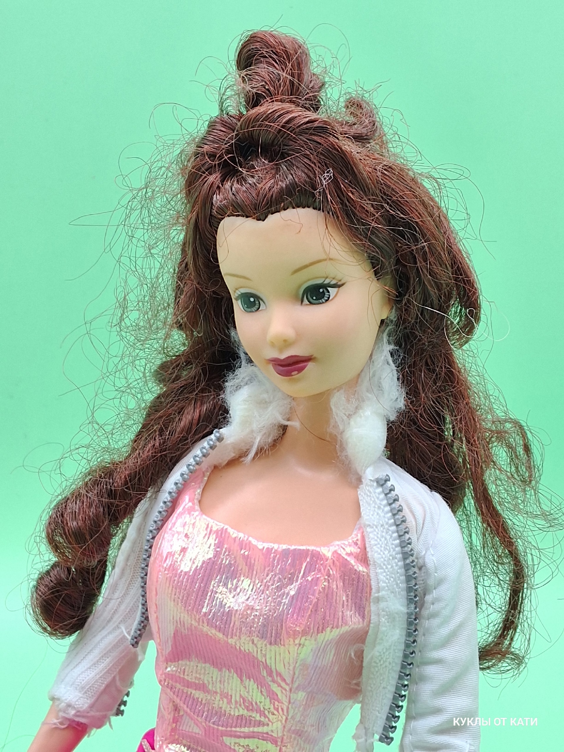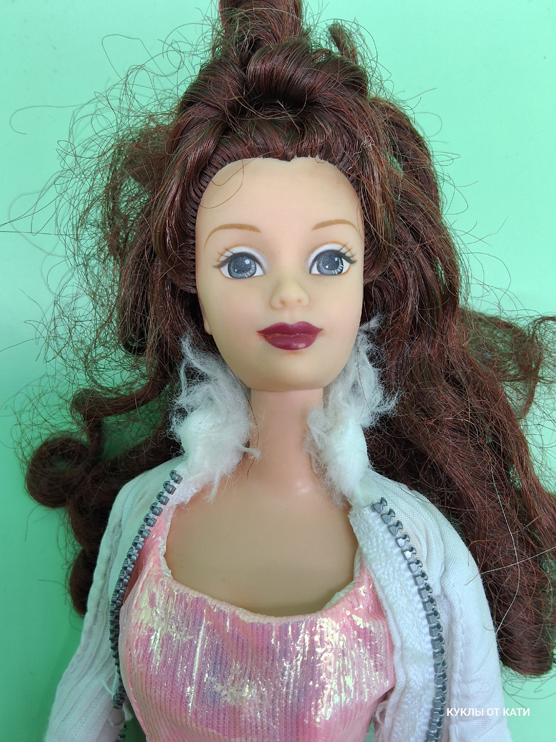 Волосы: густые, частично сохранена заводская причёска, без пустых лунок — отличная основа для восстановления первоначального вида.