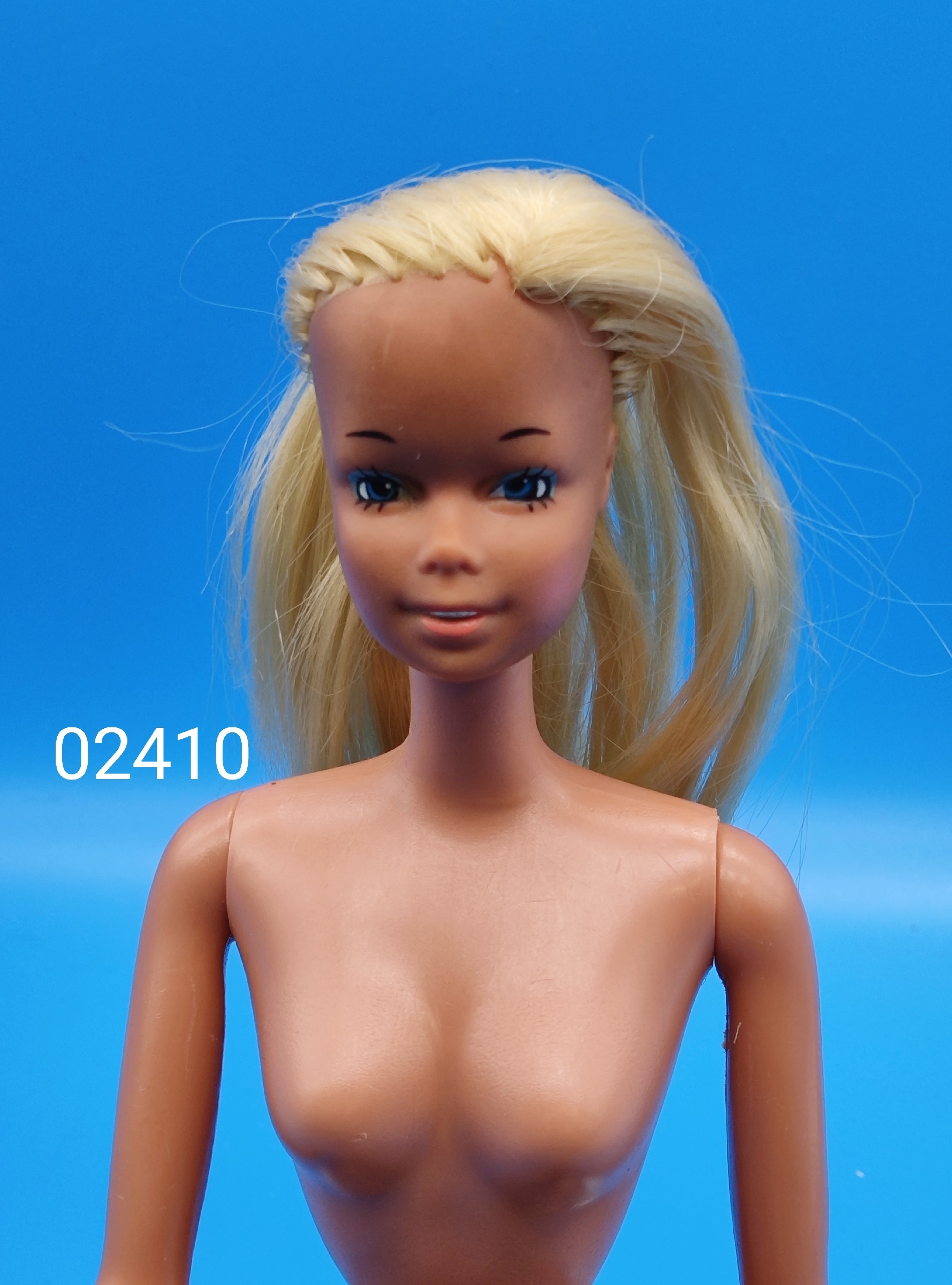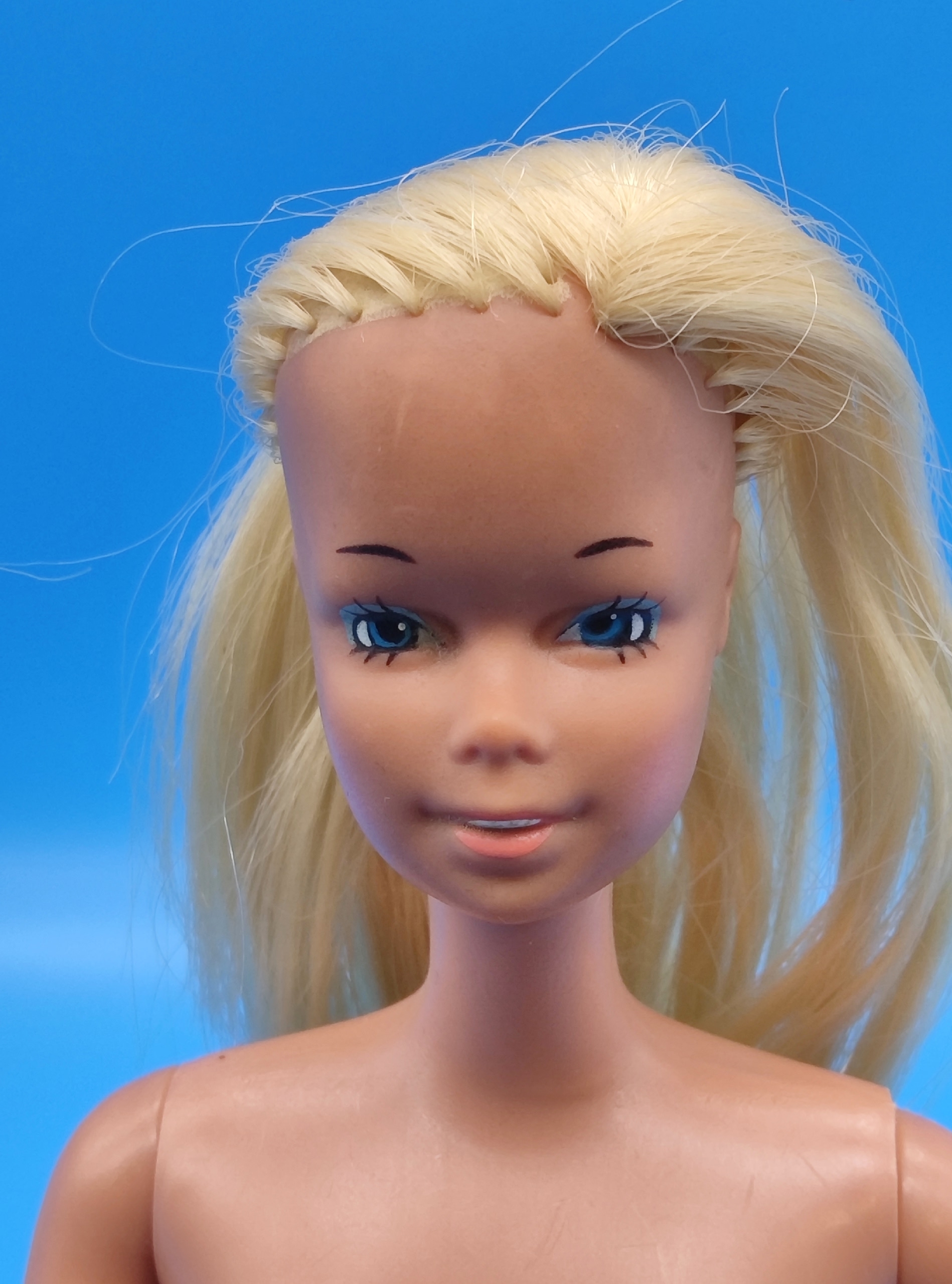 Лицо и шея: шея без сколов и трещин; сохранён оригинальный макияж; голубые глаза.
