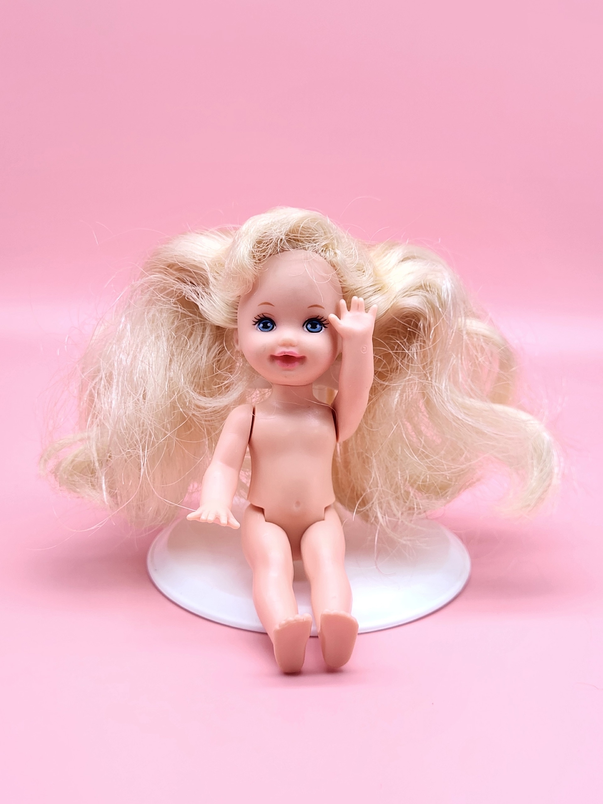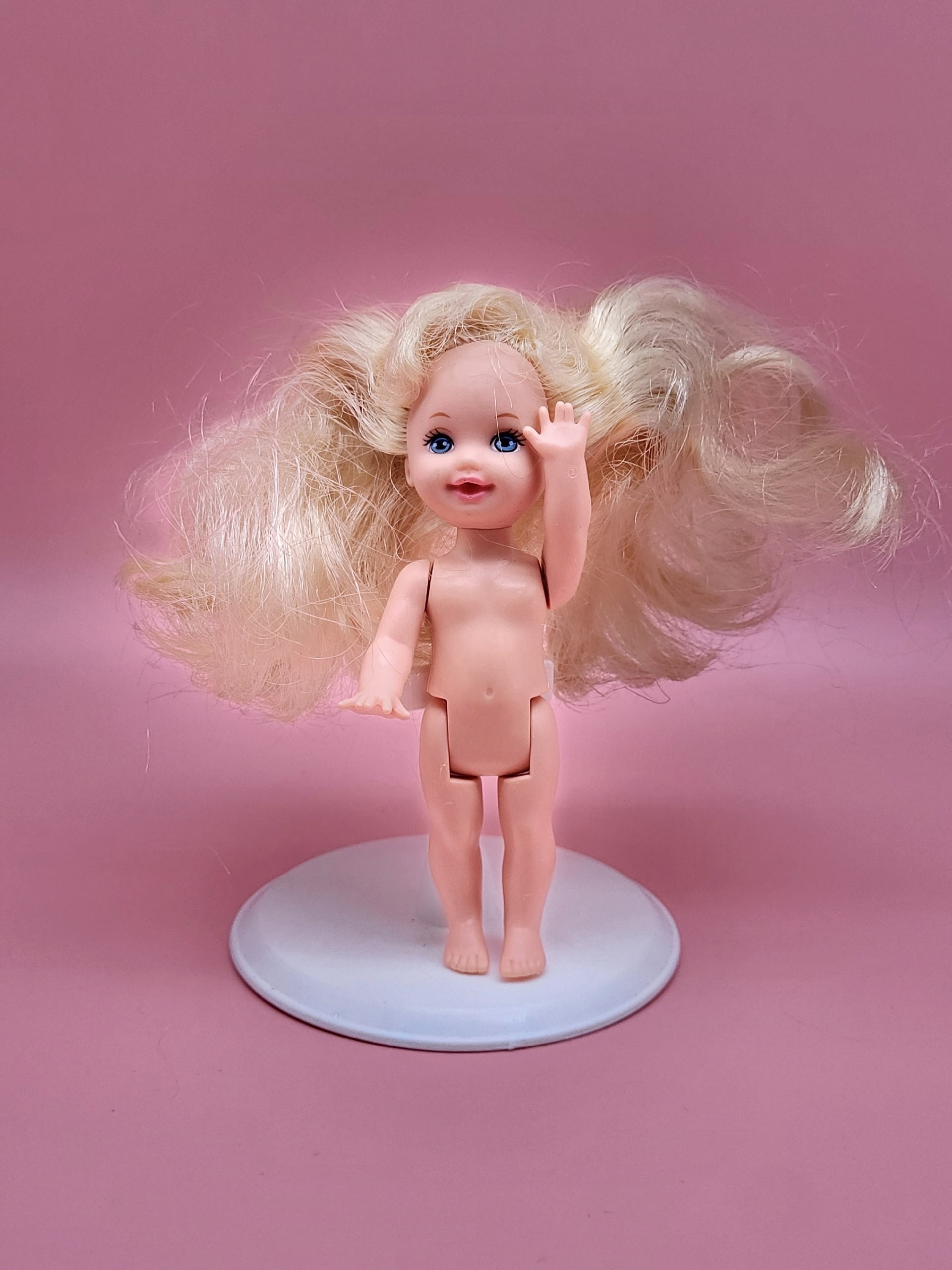 Оригинальная кукла Келли - младшая сестра Барби в очень хорошем состоянии, без одежды. Это раритетная версия, выпущенная в 90-х годах компанией Mattel.