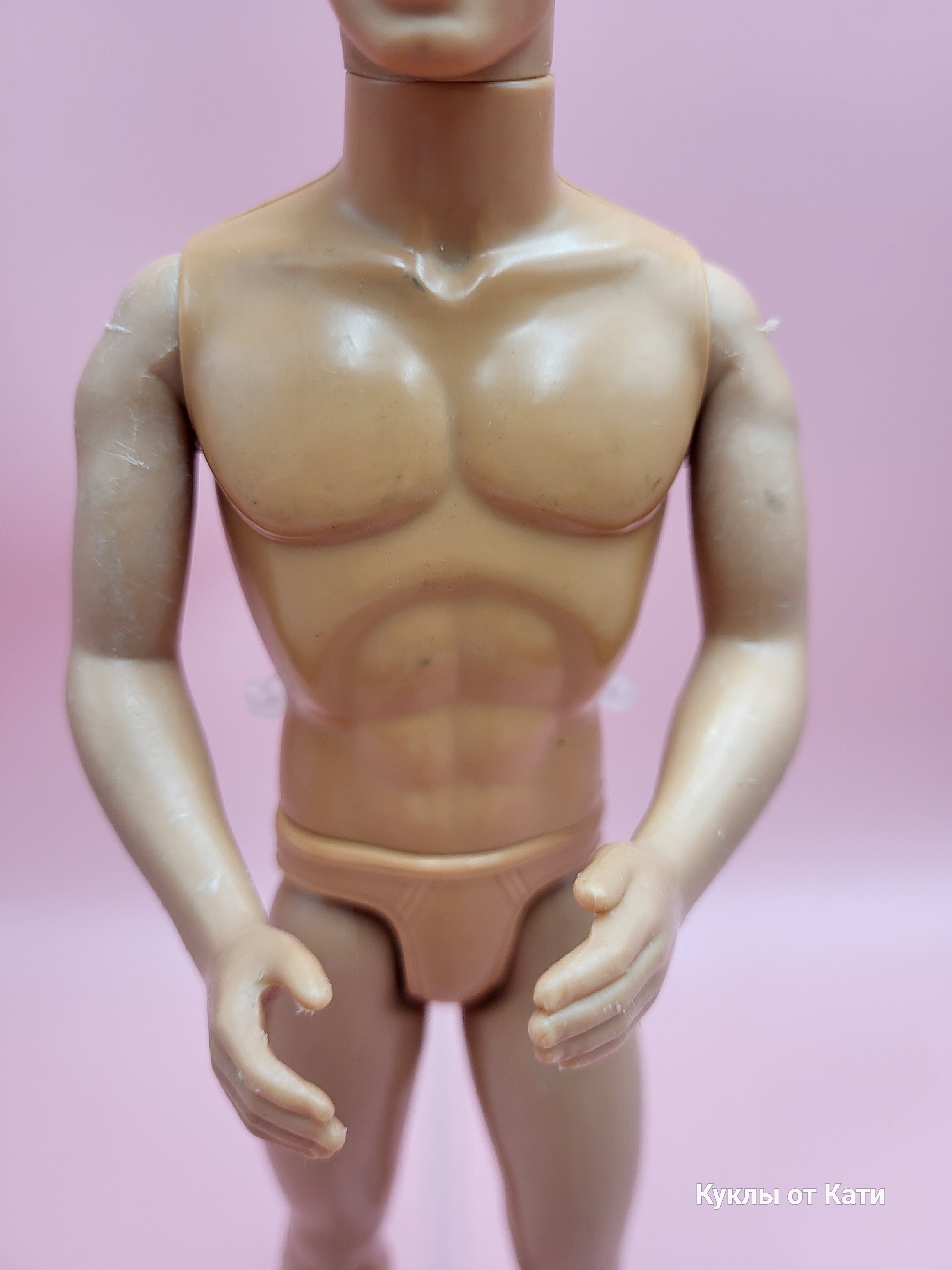 Дополнительные особенности: возможны незначительные потёртости или царапины на других частях тела, характерные для винтажной куклы.