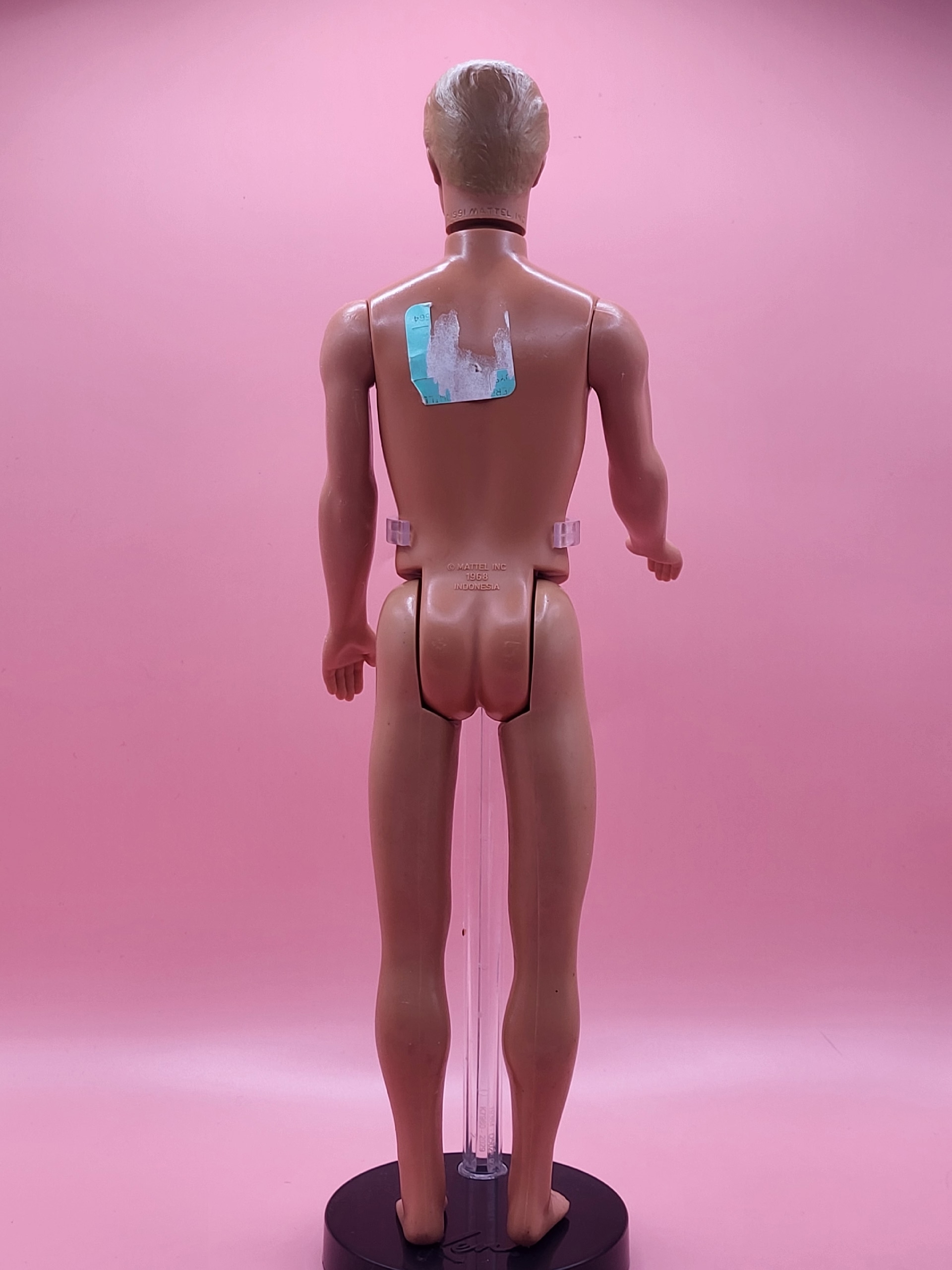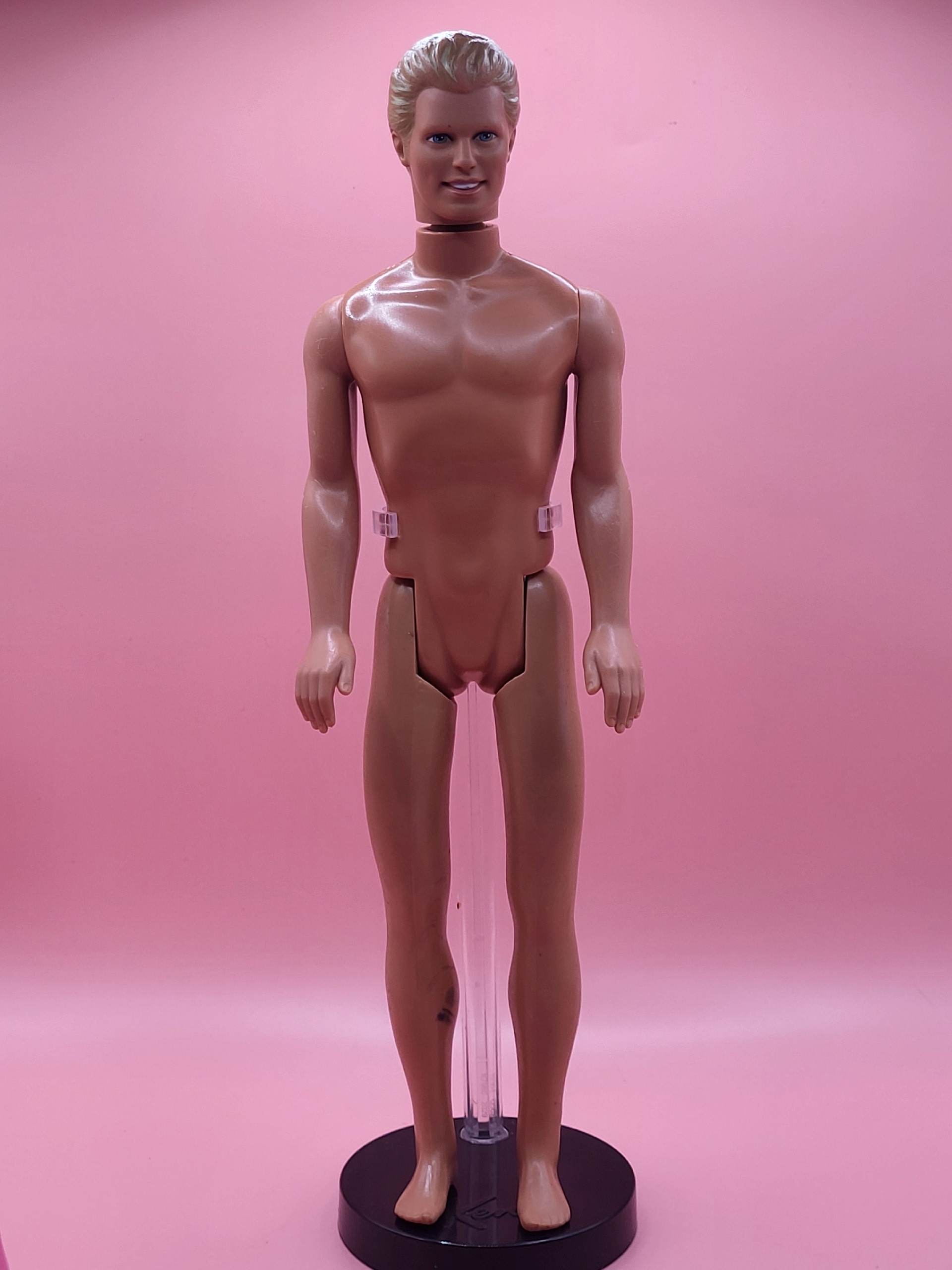 Винтажная кукла Кен из легендарной серии Барби, выпущенная в 90‑х годах. Произведена в Индонезии. Сохранила свой аутентичный облик, хотя и несёт на себе лёгкие следы времени: наблюдается утрата краски на волосах и бровях, колени не сгибаются. Идеальный экземпляр для коллекционеров, ценящих атмосферу эпохи.