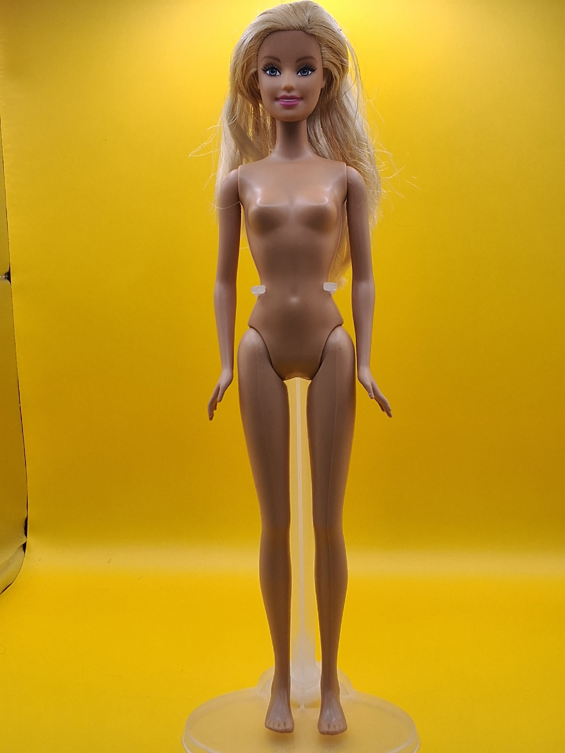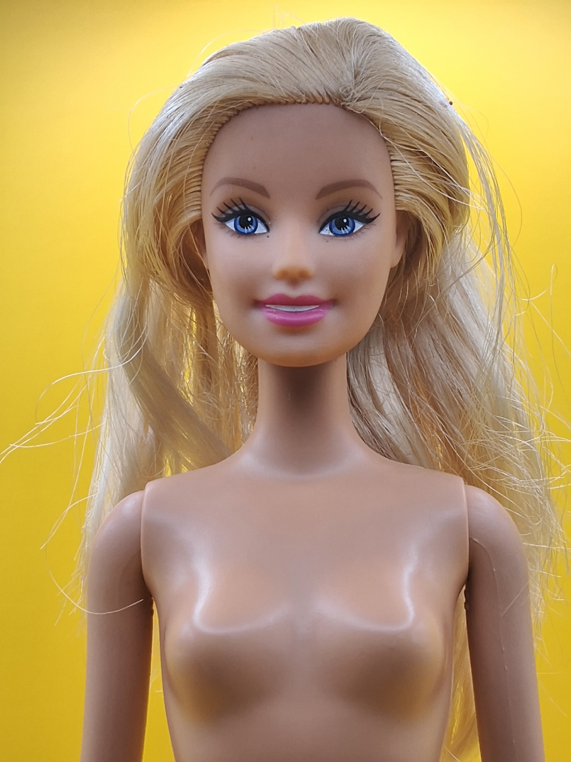 Очаровательное личико, лучистый взгляд, обаятельная улыбка и идеальные волосы — будто только что из кукольной парикмахерской. Шея без сколов и трещин, туловище и руки в отличном состоянии.
