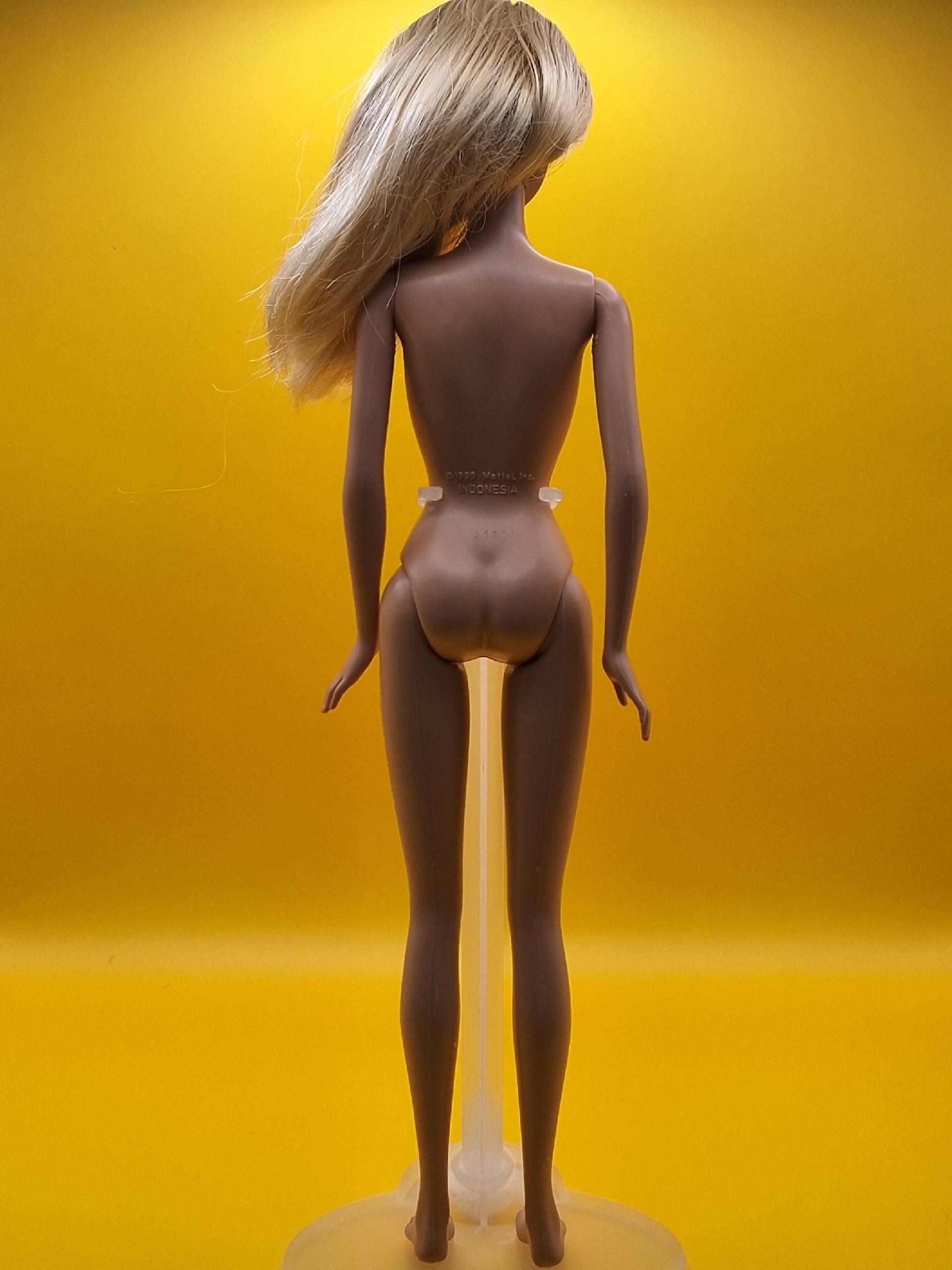 Небольшие пятна на ножках — следы воображаемых приключений: луж и пляжных танцев. Шарниры работают чётко: два щелчка — и Барби застывает в позе с обложки кукольного Vogue.