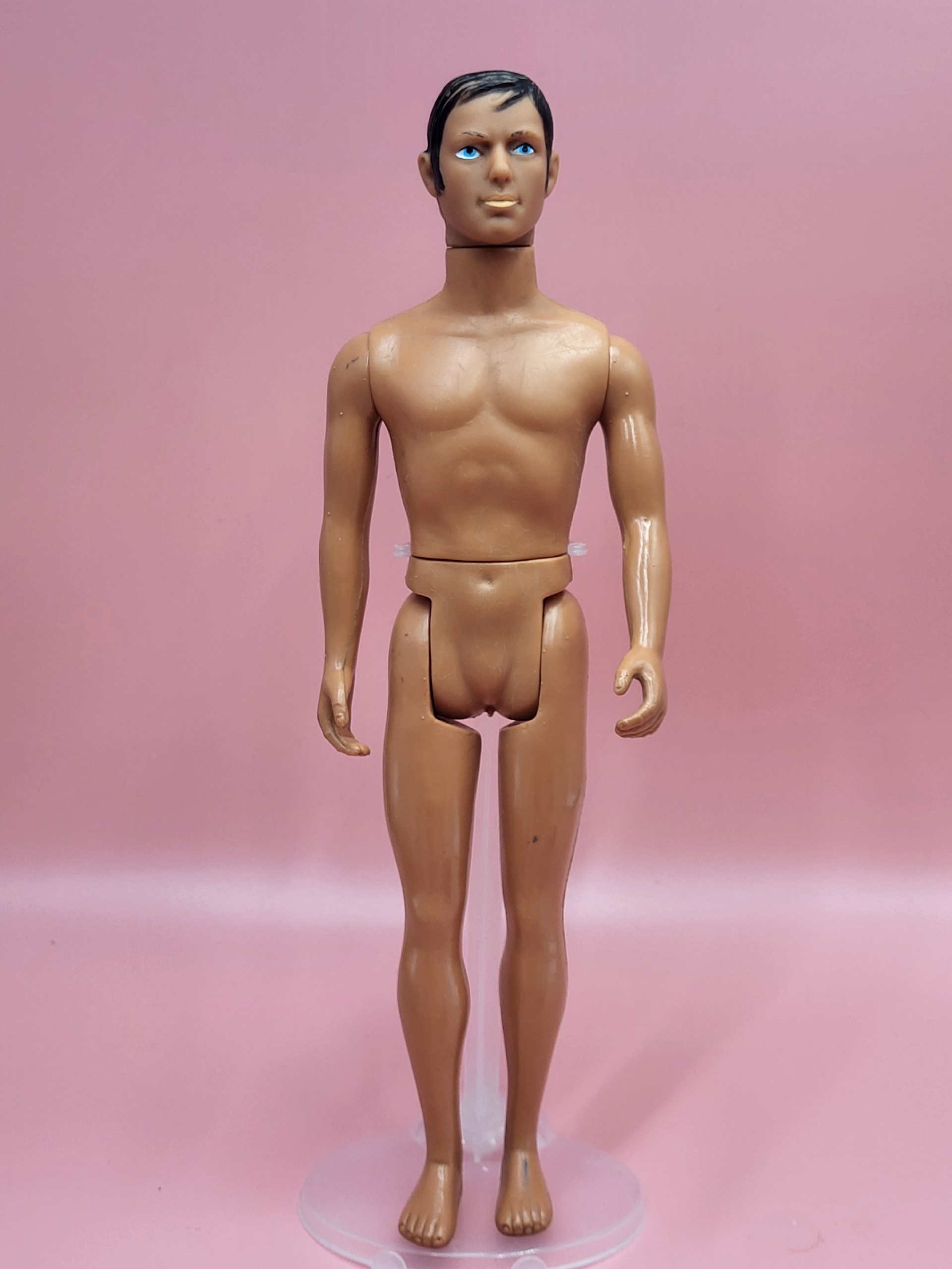 Познакомьтесь с винтажным Кеном 80‑х годов — кусочком ностальгии из далёкого прошлого! Произведённый в Гонконге, этот очаровательный персонаж несёт на себе лёгкие следы времени: едва заметные царапины на теле, чуть поблёкшие брови и волосы. Шарниры остаются подвижными, хотя ноги уже не сгибаются — как напоминание о том, сколько историй эта кукла могла бы рассказать. Идеальный выбор для пополнения ретро‑коллекции.