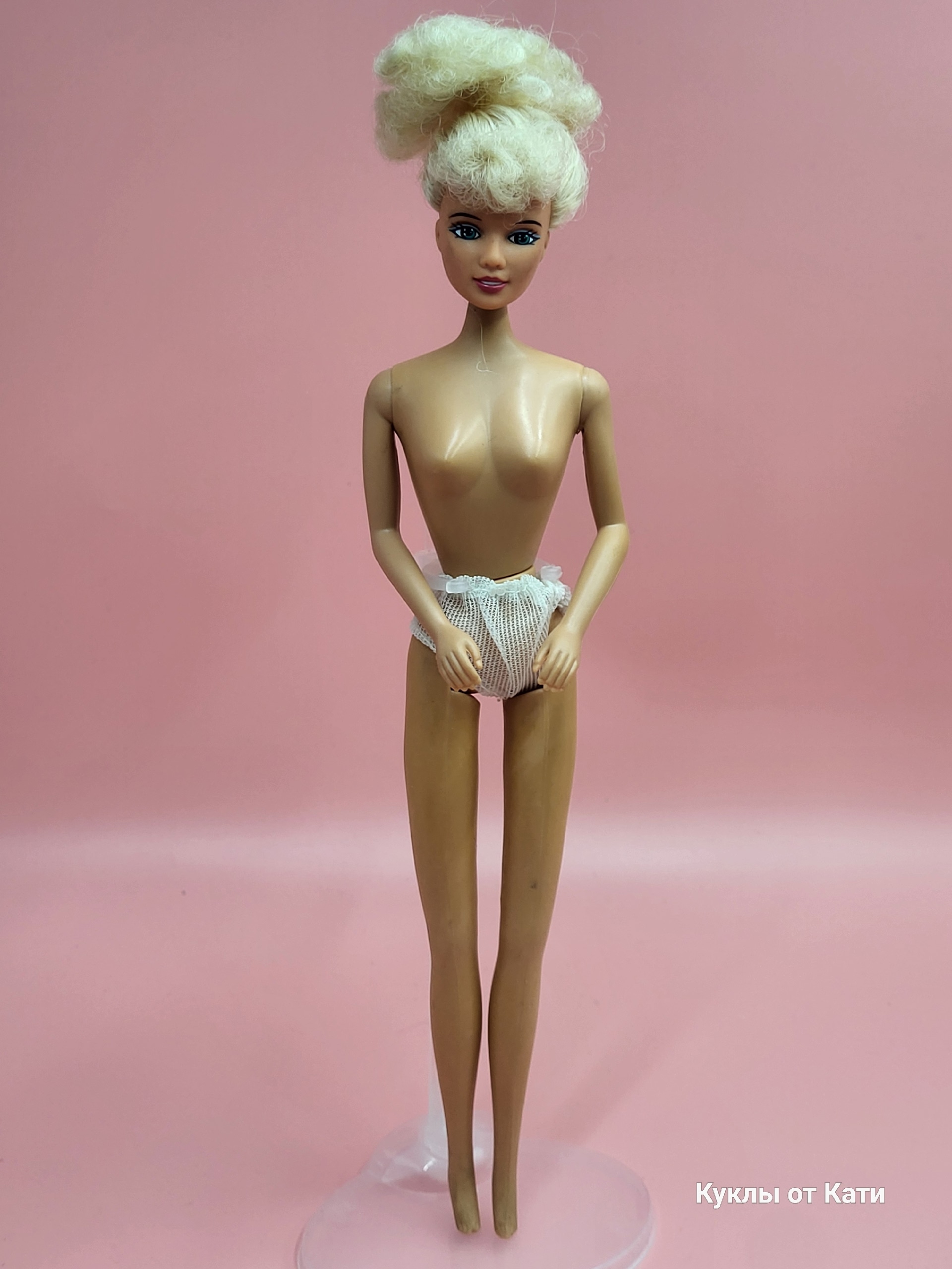 У куклы прекрасное состояние: шея целая, без сколов и трещин, макияж выглядит аккуратно и стильно. Шарниры достаточно тугие, а колени сгибаются с приятным щелчком — ровно два раза.