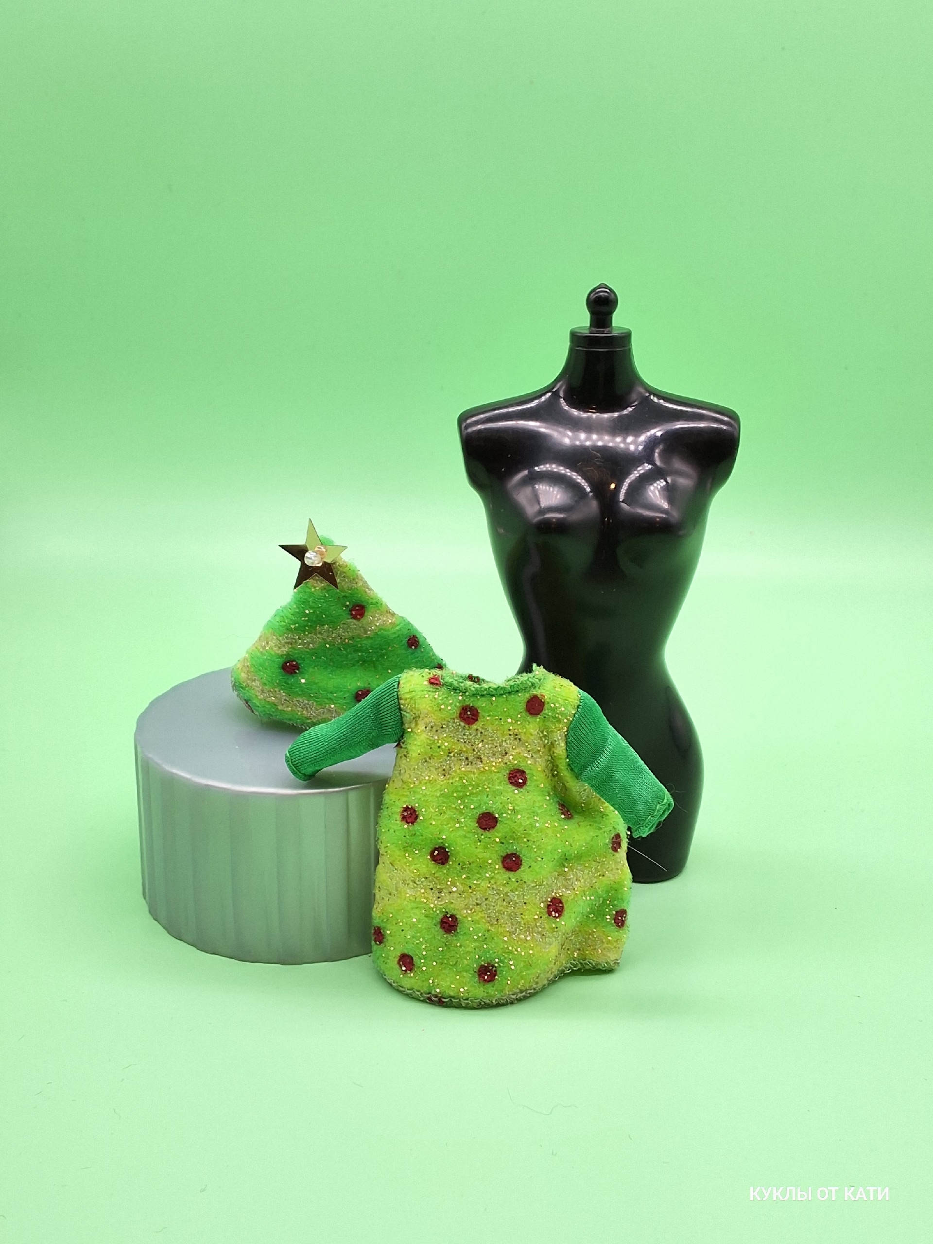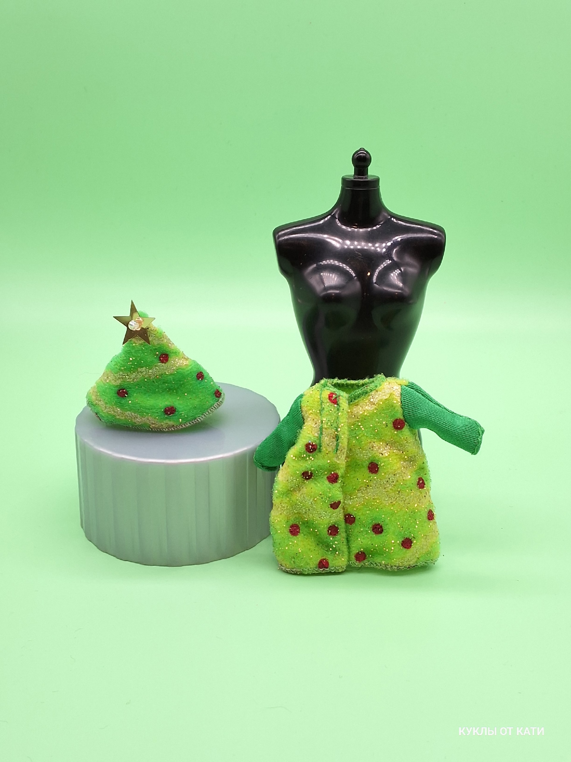 Винтажная одежда для куклы Барби- Келли . комплект шапочка и платье